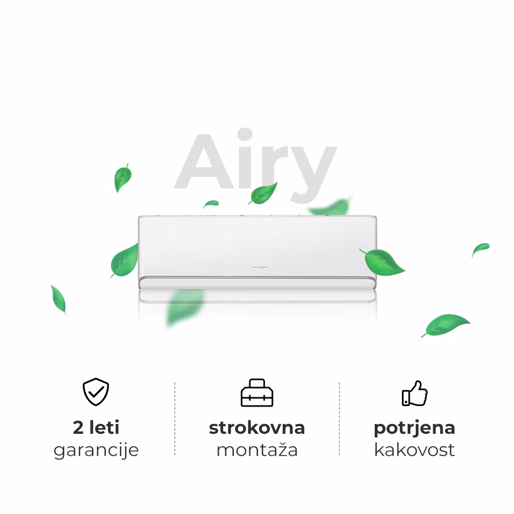 Klimatska naprava Gree Airy združuje visoko energijsko učinkovitost razreda A+++/A++ z možnostjo ogrevanja do -25°C. Ohranja več kot 80% moči pri -10°C. Opremljena je z integriranim Wi-Fi modulom za daljinski nadzor, sodobnim dizajnom v treh barvnih različicah. Poleg tega zagotavlja čist zrak z UVC sterilizacijo in Cold plasma tehnologijo, ki učinkovito odstranjuje škodljive delce.