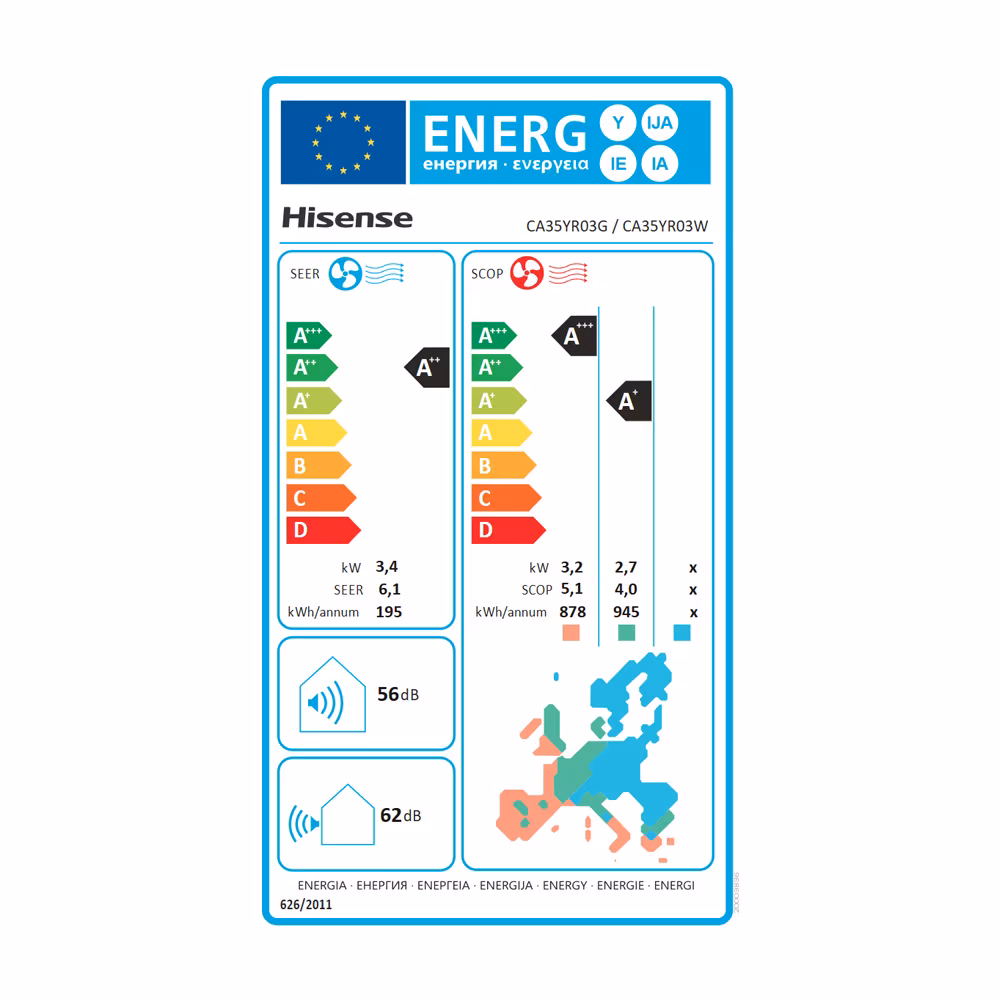 - Energetski razred A++ za hlajenje in A+ za ogrevanje.